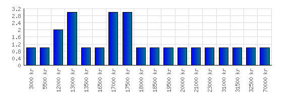 Antal ejerlejligheder fordelt efter pris i 1000 kr.